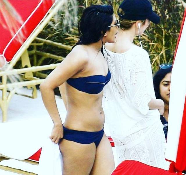 तस्वीरें भी ऐसी शेयर की गयी जो पानी में आग लगा दें, एक स्ट्रैप्लेस नीले बिकिनी टॉप यानि बिकनी पहनी हुई थी,प्रियंका ने तो जैसे आग ही लगा दी थी ।